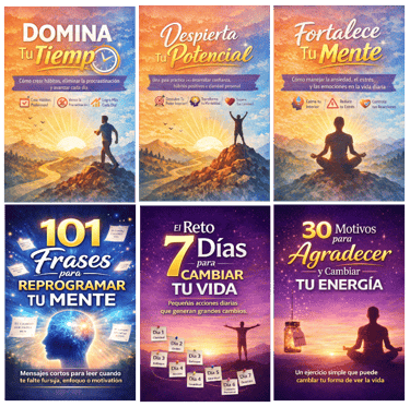 Una colección completa de desarrollo personal diseñada para ayudarte a transformar tu mentalidad, organizar tu tiempo y fortalecer tu equilibrio emocional de forma práctica y aplicable en la vida real.